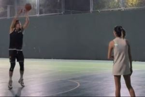 妻子帮忙捡球!付豪晒投篮训练视频:美好的一切