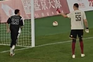 守门员韩德君直接拒绝了郭艾伦的射门 然后大韩送上贴脸摇手指