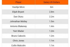 队中有9人年薪超百万美元,而最低的三位球员年薪仅12-15万美元之间。