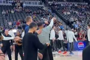 赛前,威少与约基奇在投篮热身时亲切互动,两人短暂寒暄后告别。