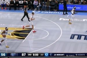 闲庭信步!莫兰特反击顶着防守人左手拉杆上篮!灰熊领先到31分!