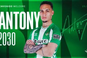 告别曼联!官方:安东尼转会贝蒂斯,总价2500万欧+50%二转