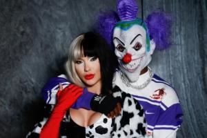 认不出来了!维尼修斯与女友出万圣节COS,打扮成小丑和库伊拉