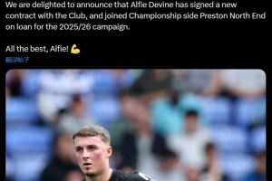 热刺官方写道:“我们很高兴地宣布,戴文已经与俱乐部签下新合同,并将在25/26赛季外租至英冠球队普雷斯顿。”